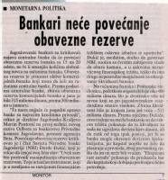 Банкари неће повећање обавезне резерве